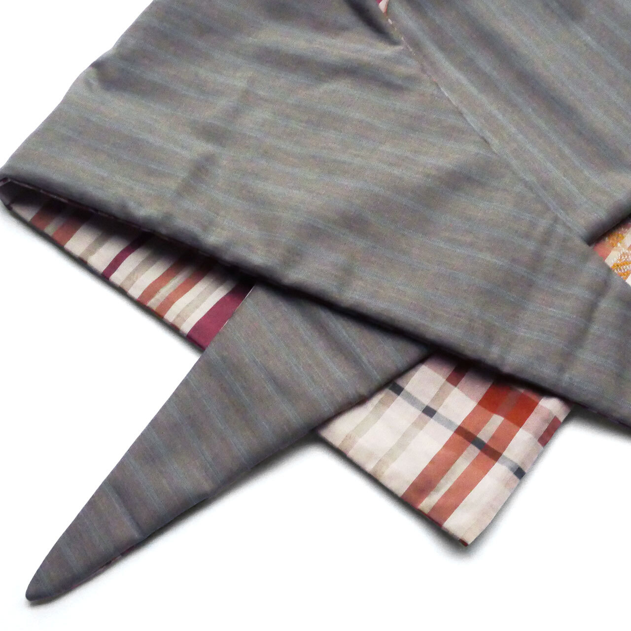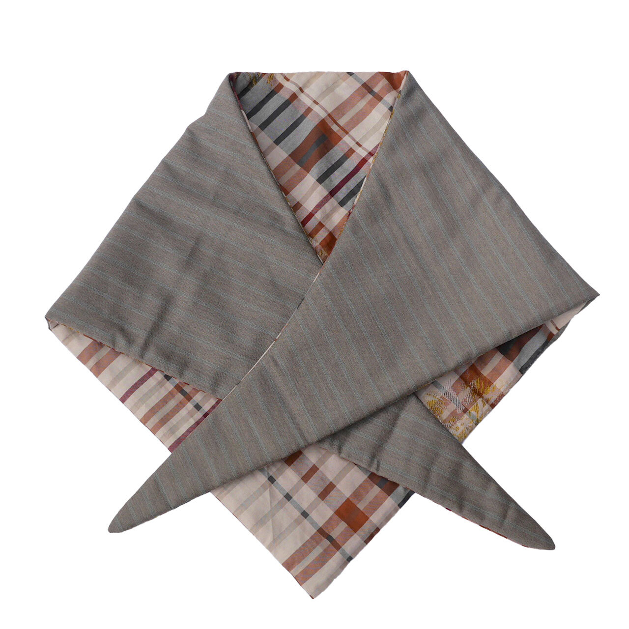 166.【灰色の国】あの綿入り三角巾(グレーストライプ×チェック)
