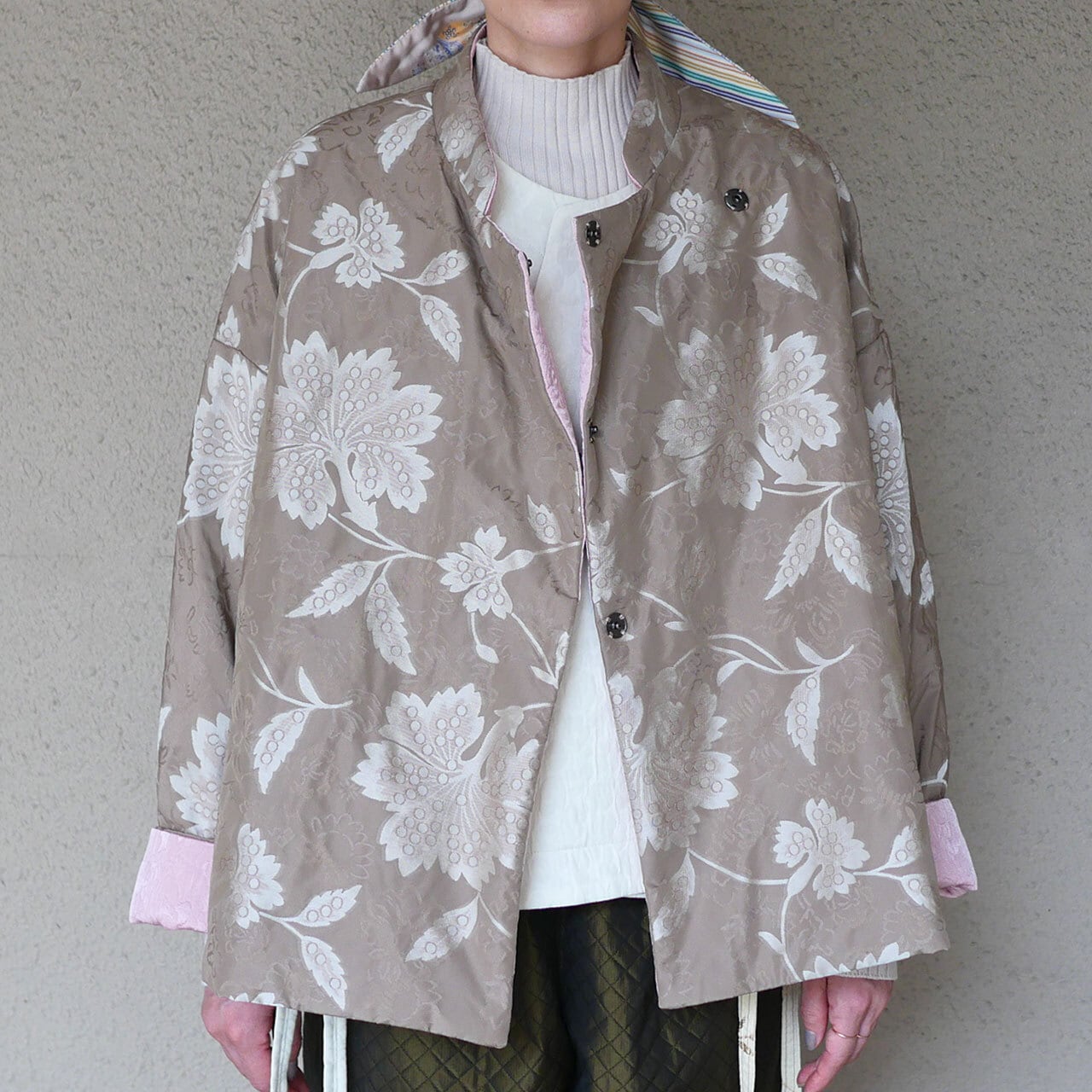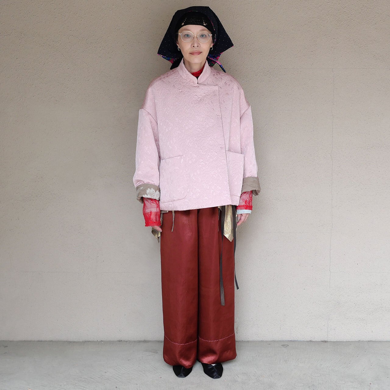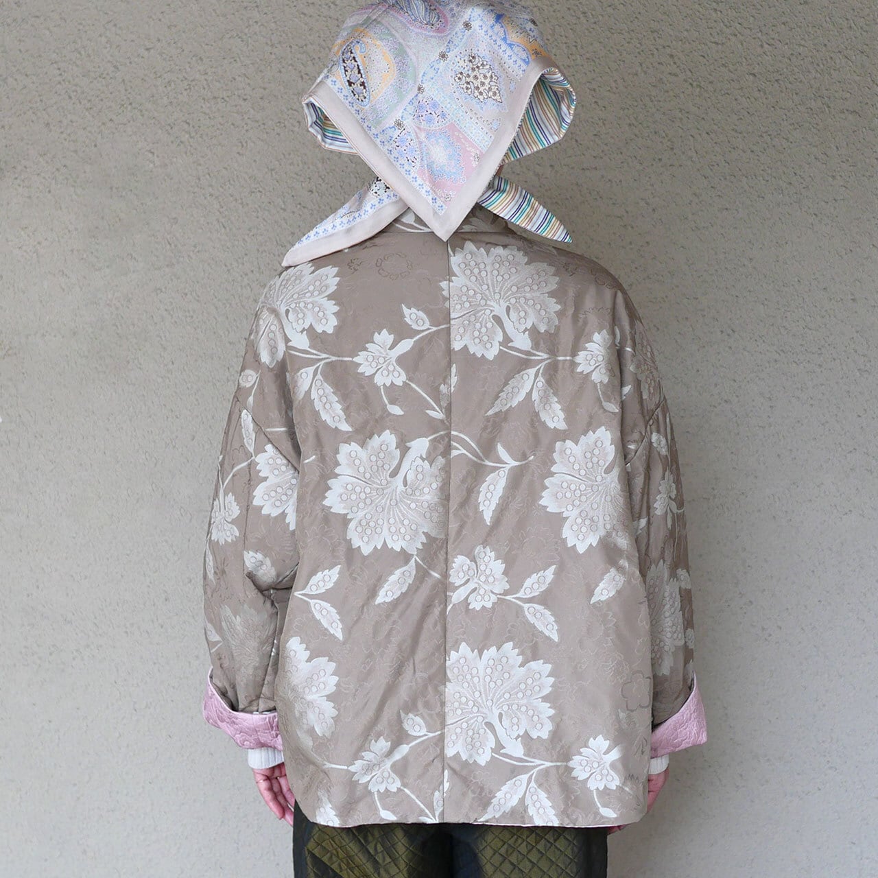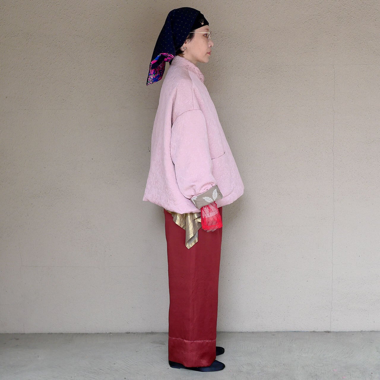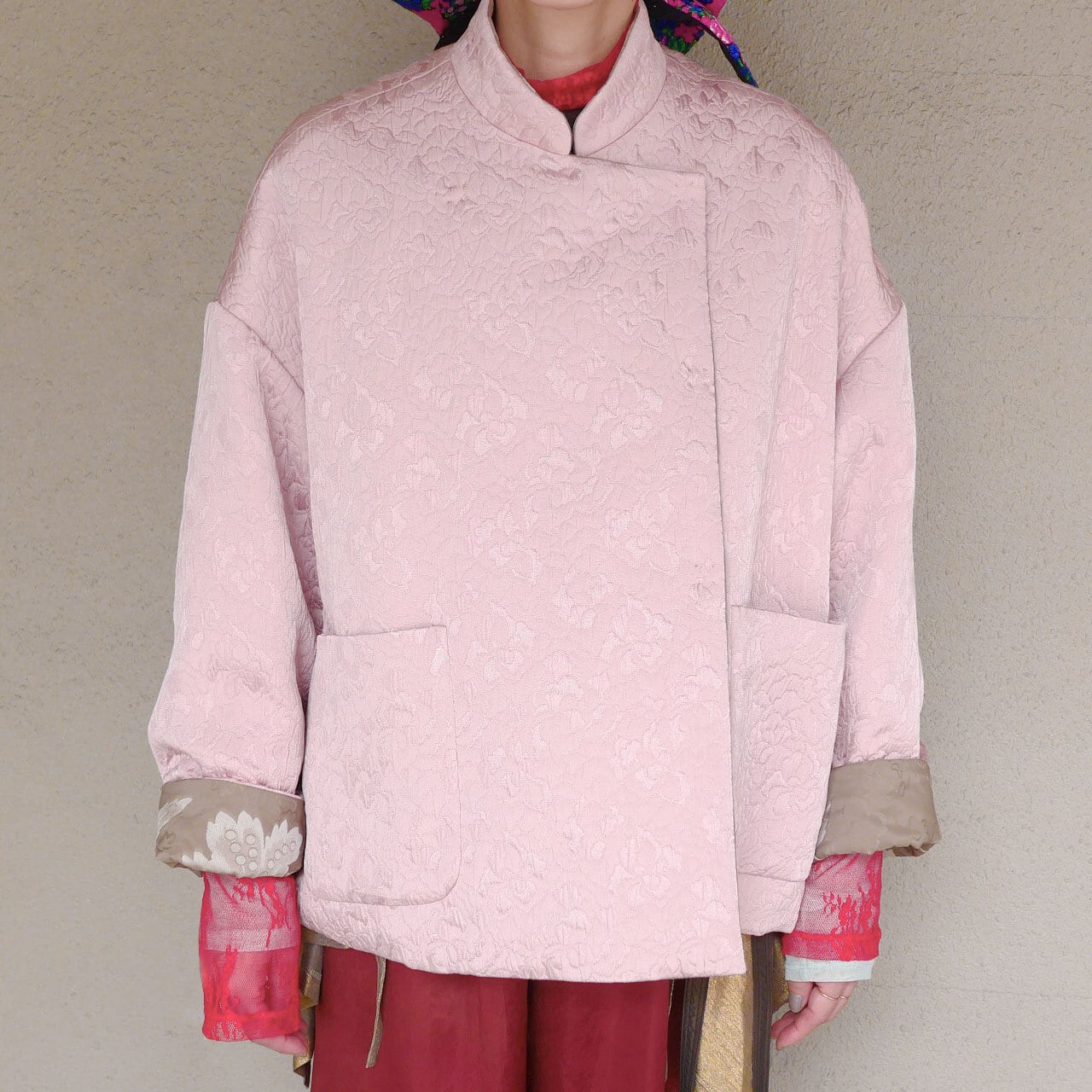 172【ピンクの国】あの綿入りマンダリンジャケット(ピンク✕ベージュ)