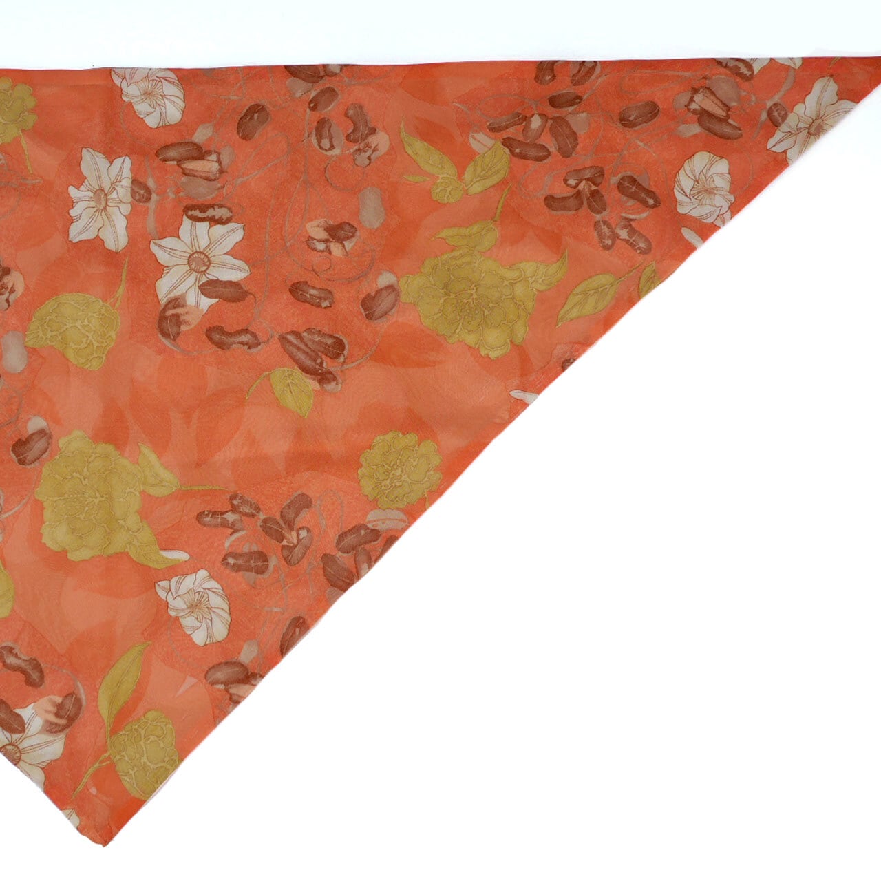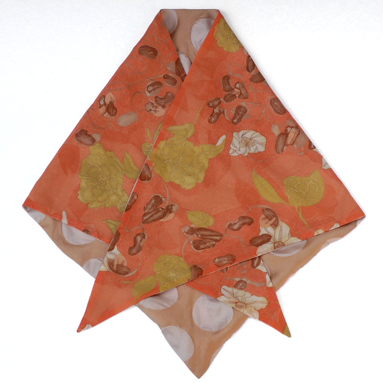 201.あの三角巾スカーフ(オレンジ花柄✕ベージュドット)