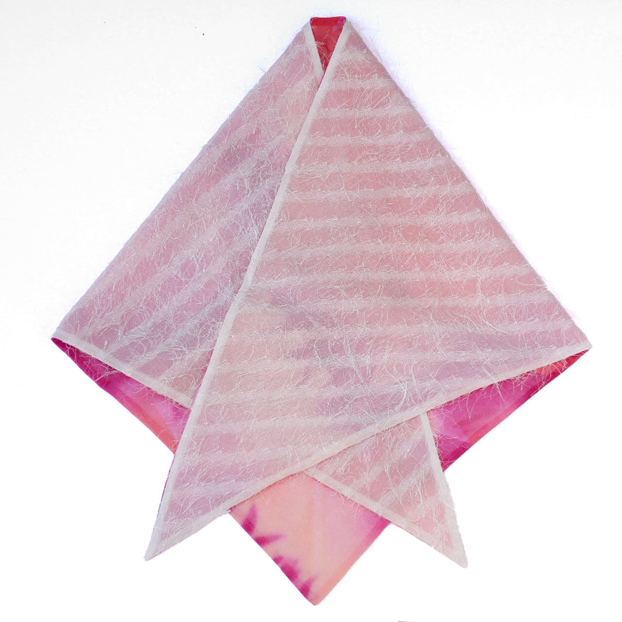 203.あの三角巾スカーフ(フリンジ✕ピンク系ぼかしプリント)