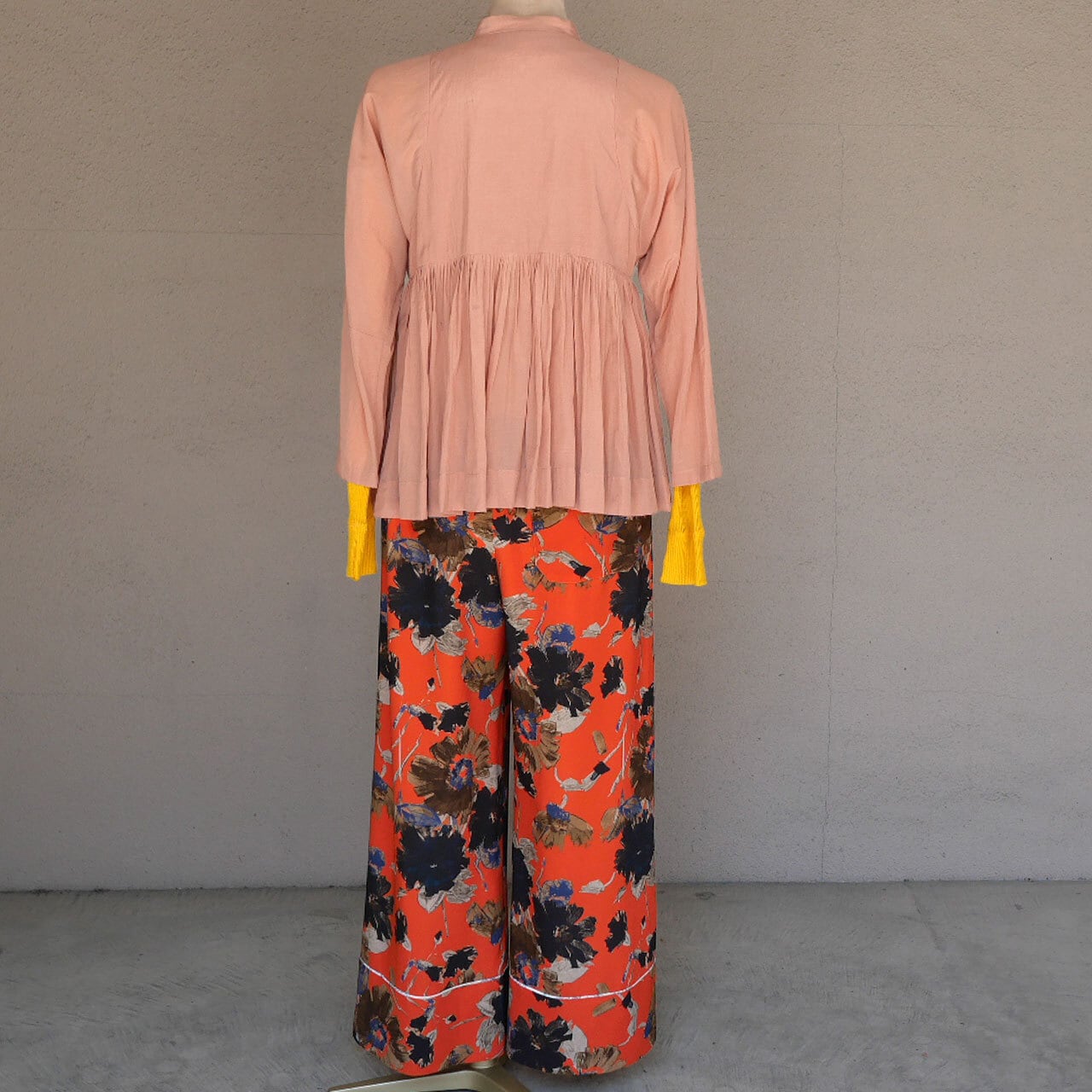 絶妙なニュアンスのオレンジベージュの綿ポリエステルのローン生地で仕立ててありますので、