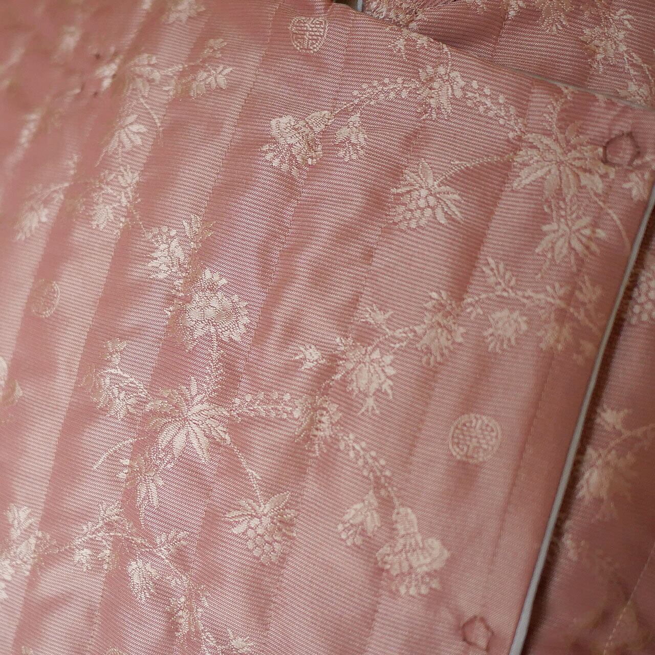 淡いブルーグレーの光沢あるワッシャーサテンと、モスピンクのチャイナジャガードとのリバーシブルです。