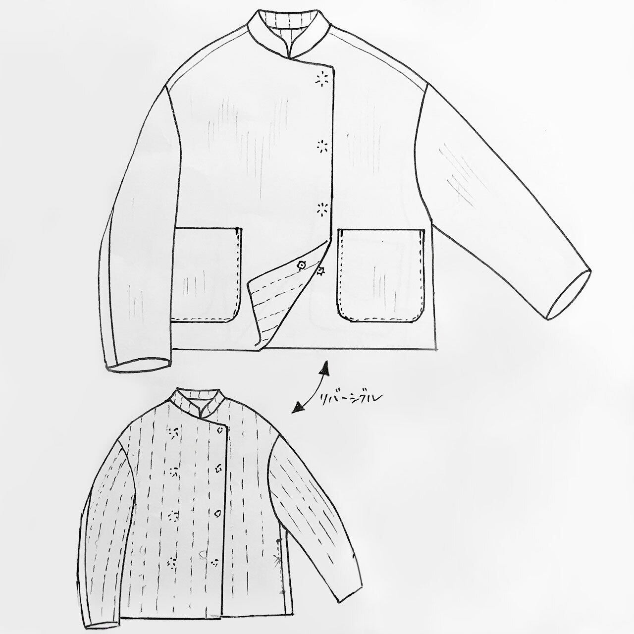 山岳民族の上衣をイメージした、綿入りのリバーシブルジャケット。